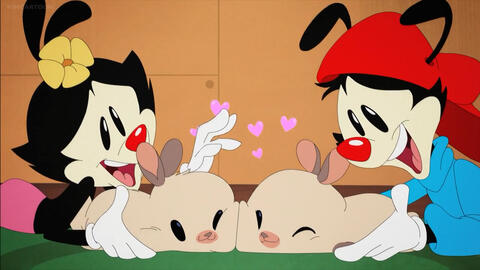 | ...BUILD.................. | A typical toon body, Wakko is short with a puppy like appearance; floppy ears and a long tail. Most of his body is hidden beneath a sweater, which makes him look either chubby or scrawny depending on how it's folded. While he's rather scrappy around the arms and legs, he does have a bit more of a belly than either of his siblings. |